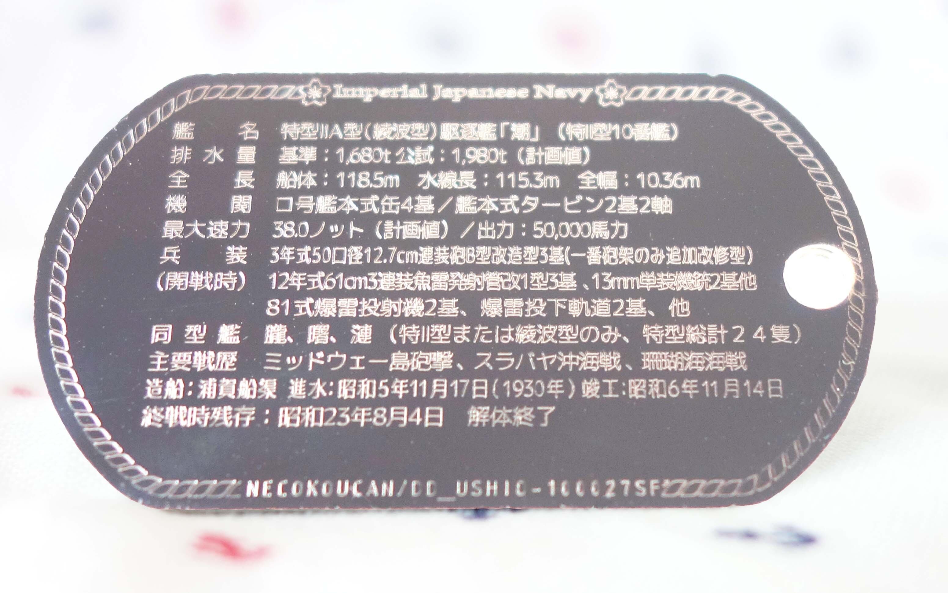 潮(特Ⅱ/綾波型駆逐艦)【名前刻印無】ドックタグ・アクセサリー/グッズ